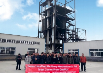 | Process flow | 1.Bucket elevator -2.Buffer bin -3.Hammer mill -4.Bucket elevator -5.Buffer bin-6.Mixer -7.Bucket elevator -8.Broken arch bin -9.Wet way feed pellet extruder-10.Air conveyor -11.Dryer -12.Air conveyor -13.Seasoning machine -14.Air conveyor-15.Cooler -16.Air conveyor -17.Finished product silo |